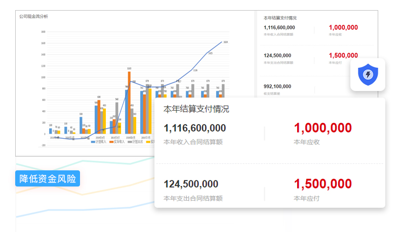 應(yīng)收應(yīng)付直接綁定項(xiàng)目業(yè)務(wù)線,人責(zé)權(quán)劃分明確,資金風(fēng)險(xiǎn)自動(dòng)提醒。